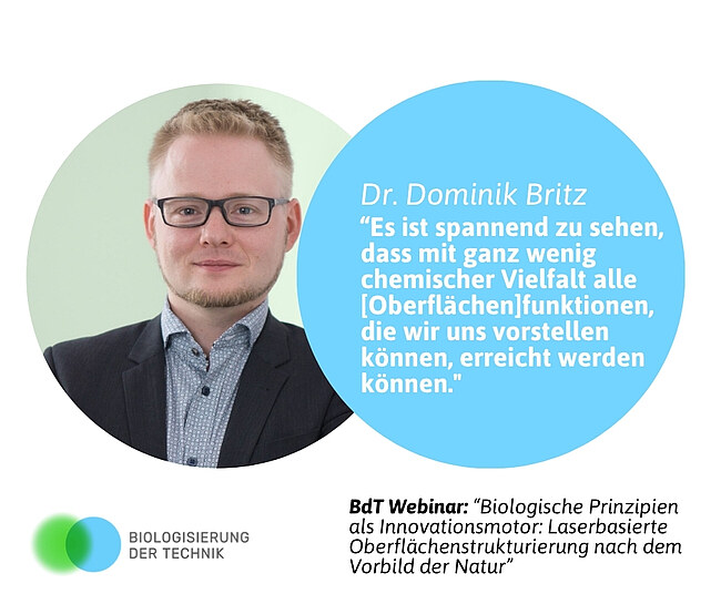 Oberflächen spielen in der Technik eine zentrale Rolle. Sie sind das, was wir sehen, was wir berühren, und was letztlich über die Funktionalität vieler Produkte entscheidet. Im Zentrum des Webinars am 17. Oktober 2025 stand daher die Frage: Wie kann die Natur mit minimaler chemischer Vielfalt hochkomplexe Funktionen realisieren und was lässt sich daraus für die industrielle Oberflächenstrukturierung lernen?